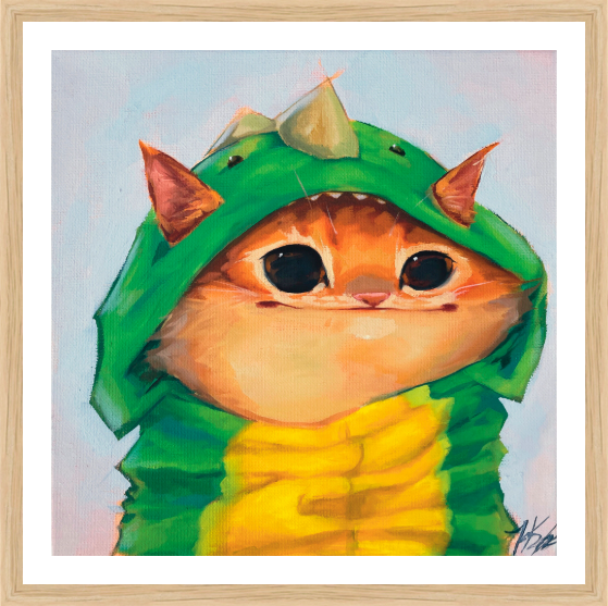 With each design hand painted using oil on linen, I have created creatures of whimsy and silliness. Through Dino Kitties and Meme Cats, I seek to bring different kinds of joy into this world.